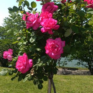 お天気良かったのでお友達を誘って駕与丁公園のバラ園に行って来ました。 見頃の薔薇もありましたが結構開いてるのもあって後数日早かった方が良かったかな?と思いました。 歩いていると薔薇の香りがして癒されました。 お弁当を作って持って行ったので時間は短かったけど楽しく過ごせました。