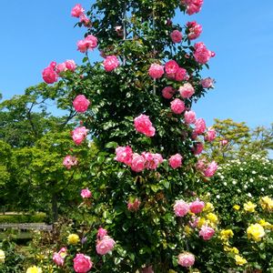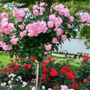 スタンダード仕立てのバラさん💕 下の子たちも羨んでる💕 こんなに大きくなれたらなぁ💕 でも、背が低くてもあなたたちもとっても綺麗よ💕 何てね☺️💓言ってみたかったんだよね😅💦💦 🏷️19日はピンクの日! 🏷️ピンクワールドへようこそ 🏷️真っ赤な火曜日