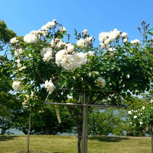 駕与丁公園のバラ スタンダード仕立て 🏷️白い水曜日♡ 🏷️水曜ローズショー もうちょっとだけよー🥱