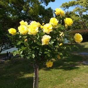 駕与丁公園バラ園より スタンダード仕立ての黄バラ ゴールドバニー❓️🤔 🏷️日曜ビタミンカラー♪
