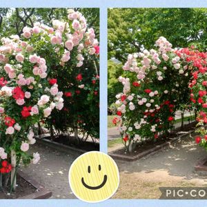 ピエール ドゥ ロンサール と アンジェラ のトンネル♥️ 先日に引き続き、5月の粕屋町駕与丁公園にて。 春が待ち遠しい❗️