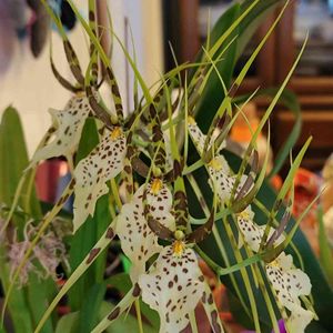 ブラッシア(スパイダーオーキッド)🕷 花芽6本、8割方咲きました😄 大株ですが、鉢を動かさなかったので置く^向きは決まりそうです😊