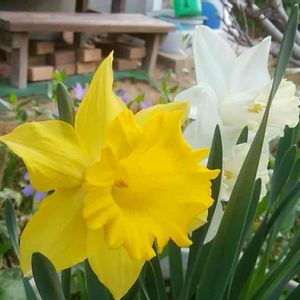 🌿ラッパ水仙🌿 こんなツーショットいかがですか?とコメントしましたが💦 実は、スリーショットなんです‼️投稿picに選んだ後、気付いたのですが・・・