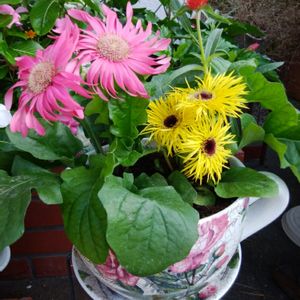 おはようございます😃🌞 秋ですね…🌾🌾 今日も30度越えの真夏日💦 暑~ぃ😵💦 HCで珍しいミニガーベラに出会い一目惚れ😍 可愛いくカップに植えて見ました💗 今日も一日ハッピーに♡ お過ごし下さいねo(^o^)o