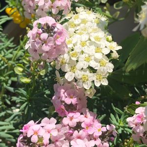 別名モロッコナズナ 別名の方が覚えやすい💗 ほんのり甘い香り😌 青みがかった細い葉もお気に入り 一旦切り戻してみたら 蕾がいっぱい出てきた😆🙌