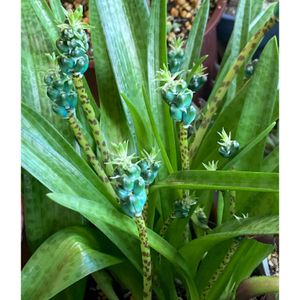 ラケナリア ヴィリディフローラ GSで見て一目惚れ😍💘 お友達から頂きました⸜(*ˊᗜˋ*)⸝ 蕾までもが美しい翡翠色✨ この色たまらんです(∩>ω<∩)" 茎、葉のヒョウ柄みたいな斑点も魅力的😍 開花楽しみ〰️🥰