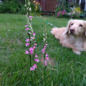 ネジバナ💕何年もここにありますがなかなか増えません 芝刈りしながら、目印付けて刈らないよう 大事にしてます 今年は15箇所 なかなか20箇所になりません😂