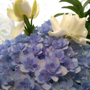 こうして見ると🌟我が家のアジサイも、なかなか良いではないか な~んて クチナシの花と キッチンに飾ってます💞このいい香りがなんとも言えない💕💕💕 大好き癒されます(#^_^#)