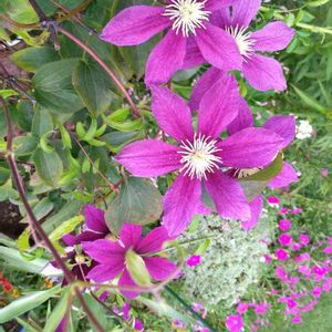 クレマチス❤二色仲良く開花🐝🐝🐝