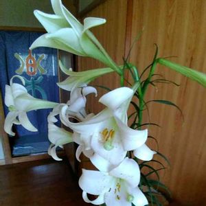 おはようございます 今日は涼しいですね~✌🎵 庭の草むしりには絶好の日です🍀庭木の合間アチコチに🌸シロユリ💕 調べてみたら🐝タカサゴユリと、いう名前🌱いろんな所で見かけすっかり野生化したそうな🌱🌱🌱 回収して玄関に飾りましょ🎵🎵🎵💞