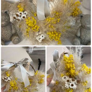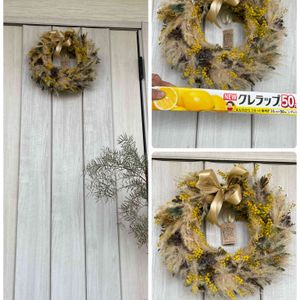 ドライのパンパスグラスとアンモビュームを使ってミモザの半リース 完成🤍✨