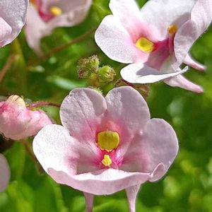 🌿ダーラ 別名ディアスシア ギリシャ語で2つの袋と言う意味だそうです 確かに🧐花の下に2つ… 花言葉は「無邪気」ピッタリですね❣️ ずーっと満開です🤗💓