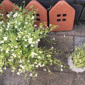 これもグレコマバリエガータと同じように家周りの隙間に植えたくて買ってきた子たち。 GSで教えてもらってめっちゃときめいたシンバラリア。 その時分けて頂いた子もいるのですが、新たに1ポット購入。 同じくシンバラリア アエクイトリロバ(左下)と、シンバラリア スノーリップル(上)。 なのですが、スノーリップルちゃんは少し弱ってます(;A;) なんとか元気になっておくれ( ´⚰︎` )