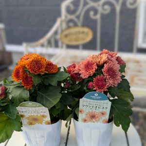 こんにちは😊 お迎え記録です🪴 ハクサンさんのフローラマム アプリコット🧡とサーモン🩷 数日前、HCで見かけてすごく気になっていた子達… 今日行ったら、炎天下の売り場で暑さにやられてちょっとダメージ気味😂 これはもう、お迎えしないと…!と思いました✨ 根っこが元気そうなので鉢増しを考えましたが、培養土の袋が熱を持っていたので… 今日はポット苗のまま、休ませています😊