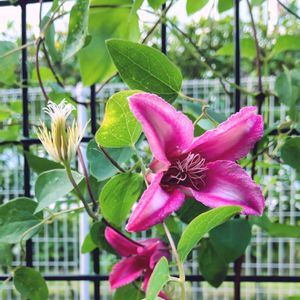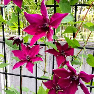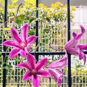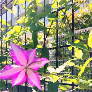 まだまだ、陽射しが強くて😊 裏庭の 💗クレマチス プリンセス・ダイアナも、暑そう😓 花色が、春より濃くて💞 陽射しに負けてないように見えます💞