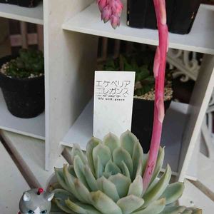 またまたうちの多産ママサン 🍀エレガンス🍀 '19.3月にHC.Kで198円でgetしたの😸 ペパーミント色好きとしてはたまりません💞 エレガンス系は沢山あるケド、和名月影チャンだよね? 何度か子吹いて里子に出したケド、今回はびっくり💦 葉の間にびっしり子吹きが2周🙀 どうやって取ればいいんだろと心配してたら、ぺたんこのまま伸びてきた😹 とりあえず9個ちょんぱ✂️ 真ん中は平べったいのは、お母さんからの遺伝だね~~~💓