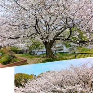 近所の公園で2日前に撮った写真です 開花したら一気に満開に❣️ 右下には菜の花も🥰 あいにく今日は大雨☔ まだ散らないで~