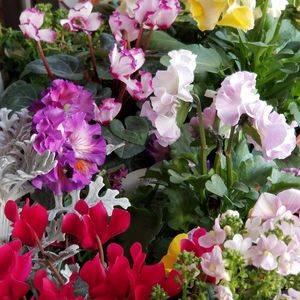 2週間位前の寄せ植え さまになってきたかしら?🎶 ガーデンシクラメン良い株でした。パンジーゆみちゃん可愛い♡