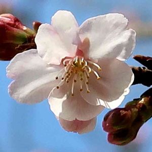 サクラ 寒桜 今日もウォーキングです🚶♂️ 靖国神社の桜の花が3つ咲いてました🌸 標本木かはわかりませんが…😅 その後、標本木ではなく 寒桜とわかりました!