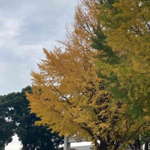 見上げれば《銀杏》がタワワ💛💚@⛩靖国神社 国葬の献花台を空から撮った写真に、 この木が写ってました🌲 今朝、ベランダに出ると、金木犀の香りがしました🌼 今年初💛 銀杏の写真を観ながら、 香りは金木犀を想像してください😆