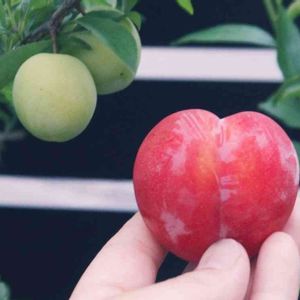 だんだん大きくなってきました!😆…いま梅の実💚くらいのサイズですね♪ カイガラムシも、貝殻の虫除けをぶら下げてから寄ってきません!😉(5/6、5/8pic参照) ちなみに手に持っている美味しそうなの🍑は、スーパーで買ってきたプラムでございます♪😁