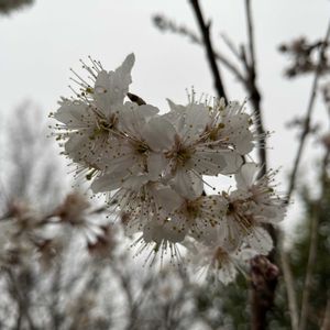 サクランボが満開を過ぎました。 プラムは開花開始、数輪ですが咲き始めました🫡