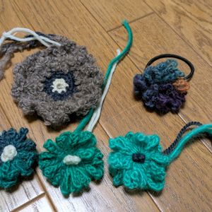 こんばんは🤗 昼から 毛糸で花❀の小物I作ってみました😅 バックに付けようかな〜 絶対枯れないね🤭