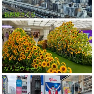 30日(日)の午前中 ⬆️新大阪駅近くのホテル 32F朝食会場からの景色🖼️ ↔️なんばウォーク クジラパークのひまわり🌻🌻 🏷️月曜日にビタミンカラー ⬇️道頓堀 えびす橋 ⬆️遠くに見えるのは箕面の山⛰️ 新幹線はブルーのさくら 新鹿児島行き 中ほどに伊丹空港があり 32Fなのでかなり大きく 機体が見えました✈️ 新大阪から御堂筋線で心斎橋へ 道頓堀 えびす橋 外国の方のほうが多い😄 心斎橋筋から なんばウォークに降りて なんばグランド花月方面へ 大阪らしい商店街を楽しみました🤗
