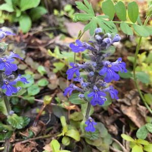 荒れ放題の裏庭で、アジュガが咲いてた!植えてから3年…初めて花を見た気がする。