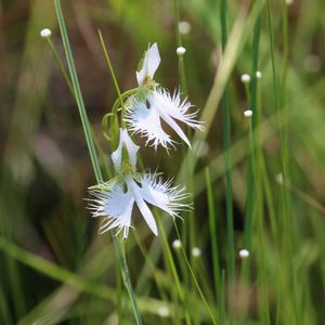 ウメバチソウ(梅鉢草)ニシキギ科ウメバチソウ属 昨年ウメバチソウの咲いてた湿原に行ってきました。 予想通りたくさんのウメバチソウが咲いてました。 近くにはセンブリ、ヤマラッキョウ、サワヒヨドリと色んなお花を見ることができました。 1⃣ 開き始めた蕾が可愛い〜 4⃣ 花後の姿も可愛いです。 5⃣ センブリとコラボも素敵です。 北海道〜九州の山野の日当たりのよい湿地に生える。根生葉は数個が束生し、長い柄がある。 葉身は長さ幅とも2〜4cmの広卵形で、基部は心形。 茎葉は無柄で茎を抱く。 花茎は高さ10〜40cm、茎頂に直径2〜2.5cmの白色の花を1個を上向きに開く。 花弁は5個、雄しべは5個。花粉をださない仮雄しべ5個は、先が糸状に12〜22裂し、先端に小さい球状の黄色い腺体がつく。 子房上位で雌しべの柱頭は4裂する。花期は8〜10月。 🏷 白い貴婦人✨