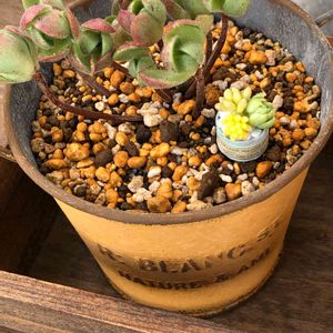 色白さんに一目惚れ😍✨して2つ買って約1ヶ月…少し大きくなったので鉢を大きくしてみました❣️これまた自作リメイク鉢✌️色白さんにピッタリ♥️