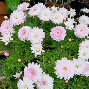 おはようございます。 曇りですが風もなく穏やかな日曜日 これから気温も上がる様です 我が家のマーガレット達 今年仲間入りの 1 スマッシュ ダブルストロベリークリーム 2 先日もご紹介した シュガリースフレ 夏越し冬越しの シンプリーコーラル エンジェリック スイーツ ピンクのダブルは名前わからなくなってしまいました