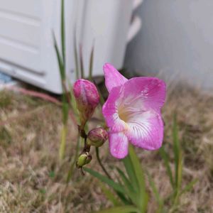 今日のお花 我が家は、ピンクのフリージア💗 室外機の側に植えて、しかもドッグランへの出入口近くで、新芽が伸びてきた時には よく踏まれる👣😂 移動させようと思いつつ三度目の春。 芝に覆われてか細く生きてる😅 今年こそは花壇へ移動だわ😤