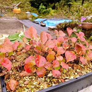 育苗箱植えのイワツツジが紅葉しました🍁 最近イノシシ来なくなりました😀