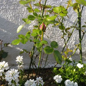 バラの第1号🎵 別の子の方が先かと思ってたら鉢植えの子が先でした😄 数年前、よく行くHC【ジュンテンドー】で「半額で良いよ」って言ってくださったのでお迎えした子です💓 目指す庭のイメージはあるものの、やっぱり予算との兼ね合いも😣 そして、ドリフトさんは手入れが楽なので、育てやすさもバッチリです😆