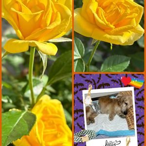 一日遅れで虹の日🌈参加させて 頂きます🙇♀️⋆꙳ 黄色の薔薇を枯らしてしまったの 新苗でお迎えしたレヨンドソレイユが咲きました💛 バーディーと最後のお別れに持たせたのが黄色の薔薇だったので 大切に育てたい☺️💛🌹💫 半年以上の介護でお互いにヘトヘトでしたが密の時間でした🥰 寝返りを打たせるにも 顔と胴体が一緒にひっくり返せず 顔は右、胴体は左にと… その姿はホラーだったかも👻😱 :(´ºдº:;`):ヒィ-💦🐶🐾🌈