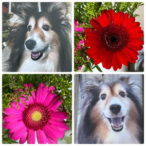 おはようございます😊☀️ ①キク🤍 ②ガザニア ③ヒャクニチソウ ④⑤🌈柴犬JIRO🌈 虹の日🌈に参加します🐶🐾
