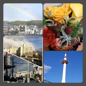 おはようございます!バイトが忙しくて、疲れてます😭 昔の📱より、 虹とお気に入りの頂いたアレンジと、良く撮る京都タワーです。 明日行けば休みなんで、頑張ってきます!🆗✌️ 今日も素敵な1日を過ごしましょうね🎵🐣 🏷️虹の日