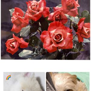 薔薇🌹 (撮影した薔薇の写真を、パチリ📸した物) 今日は虹🌈の日と、 今気づきました💦 🌈の向こうに行ってしまった友人の撮影した薔薇。 薔薇の写真を撮るために、 🌹栽培をはじめた人でした。 これは、その作品。 カメラの腕前はプロなので さすがです。 眠りこける💤🐶たち ↙️🌈を渡ったさくらです ↘️我が家の二代目、ののです