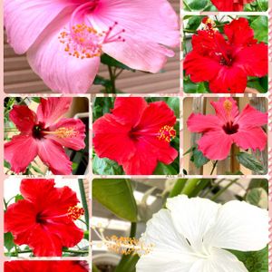 🏷️虹の日 視線を感じて… ① ハイビスカス ハワイアンイエロー ② ハイビスカス フィジアンピンク ③ ニチニチソウ サマーミント ④⑤ ハイビスカス ケイト 3日前〜今朝撮 カバー写真更新 *ハイビスカス ホワイトバタフライ