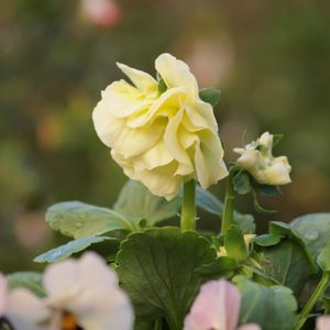バラ?サザンカ?チューリップ?水仙?✖️違います。 答えは パンジー シュシュホワイトです。 上を向いて咲きます♪余りにも可愛くお迎えしちゃいました。 2枚目 お一人様植えにしました。
