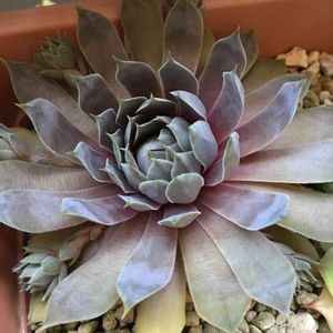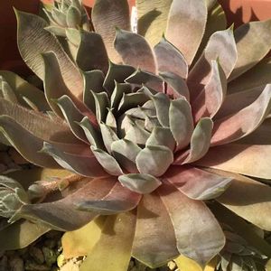 外葉の枯れ始めも魅力の1つ。 外葉:サーモンピンク 普通んとこ:薄紫 中心部:薄緑 丈夫だし、沢山仔吹くよん。 (*^^*) 画面のタグ🏷移動で、この子や姉妹株の色んな時期の姿が見られます。