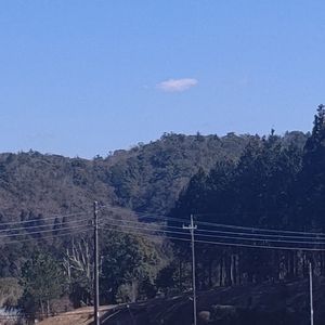 実家の庭から見た山々 青い空💙に たった一つの 雲☁️ 雲仲間に参加いたします😃