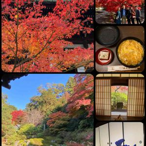 京都旅行vol④ 2008年、子供達が小学生だった時に家族で初めて行った真如堂。その時の紅葉があまりに美しくて…また5人で一緒に訪れることが出来、本当に幸せ。 真っ赤な桜の葉も黄色い銀杏の葉も終わっていましたが、 懐かし真っ赤な楓(当時、こんな真っ赤な紅葉を見たことなくて❗️)の前で家族写真を📸。 真如堂のあとは、花友さんに教えて頂い「権太呂」岡崎店で、五人五様の麺を! 私はケンミンショーに出たという、(けいらん)というあんかけうどんを😋 お腹が満たされた後はまた🚶♀️いて、 青蓮院門跡(しょうれんいんもんぜき)を拝観。 門跡寺院は、皇族や摂家が出家する特定の位の高い寺院のことで、 青蓮院は天台宗の京都五箇室門跡の一つ(だそう) 池泉回遊式のお庭は相阿弥作かと。 青い蓮の襖絵が調和していました。 すべての意匠が繊細で美しい寺院でした。