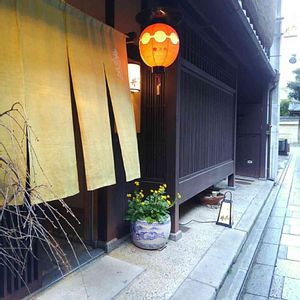 祇園の風情ある小路にて とあるお店の入り口にセンスよくお花が飾られてました 火鉢らしきものに粋に飾られていたお花✨リュウキンカと教えていただきました💛