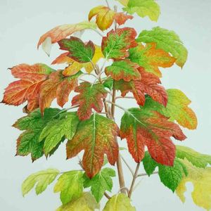 🎨ボタニカルアート「カシワバアジサイ」 散りゆく秋色… いえ、実際には結構しぶとく枝に残ります。私は葉っぱごとぐるぐる巻き🌀に雪囲いしちゃいます。何となく、防寒になるような気がして。