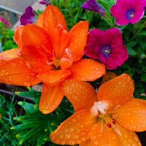 こんばんは🌇 帰宅したら 迎えてくれた お花達🌼 雨を楽しんだようです🎶 明朝は、お水は要らないかな😁 今日も一日お疲れ様でした💮