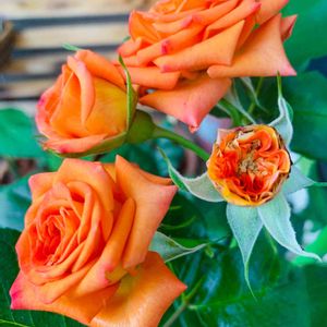 こんばんは🌠 こちらの薔薇さんは 中輪咲きで、とても元気で強いです🍀 秋まで咲いて ドライにも🧡 名前は分からず😅 今日も一日お疲れさまでした🍀