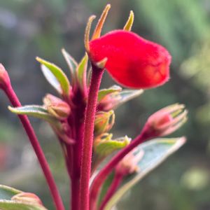 丁寧に育てました🥀金魚似の "シーマニア" ①やっと一輪 9/15 ②グングン増える葉っぱ 7/27 (保険の水挿しも発根) ③蕾も次々と膨らんでいます9/15 晩秋の山中湖の温室で見つけた シーマニアに一目惚れ🧡 数年後、HCで廃棄寸前?に見えたシーマニアの鉢植えを即買いしました🪴 まずは大きめの鉢に植え替えて、更に茎を切り取り、小瓶に水挿しをして保険をかけます とにかく水やりが大変で毎日300〜500mlは欠かせません💦 ゴクゴクと音を立てて水を飲んでる感じ🤣 イワタバコ科、グロキシニア属 アルゼンチン、ペルー、ボリビアの森林に生えているそうです 寒さに弱いので一年を通して鉢植え管理を要します🪴