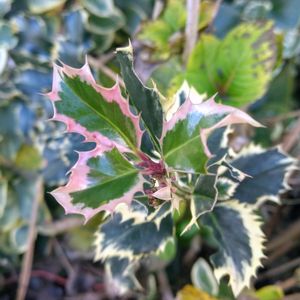 🏷️8日は葉っぱの発表会 西洋ヒイラギ斑入りの新しい葉はピンクで可愛い!